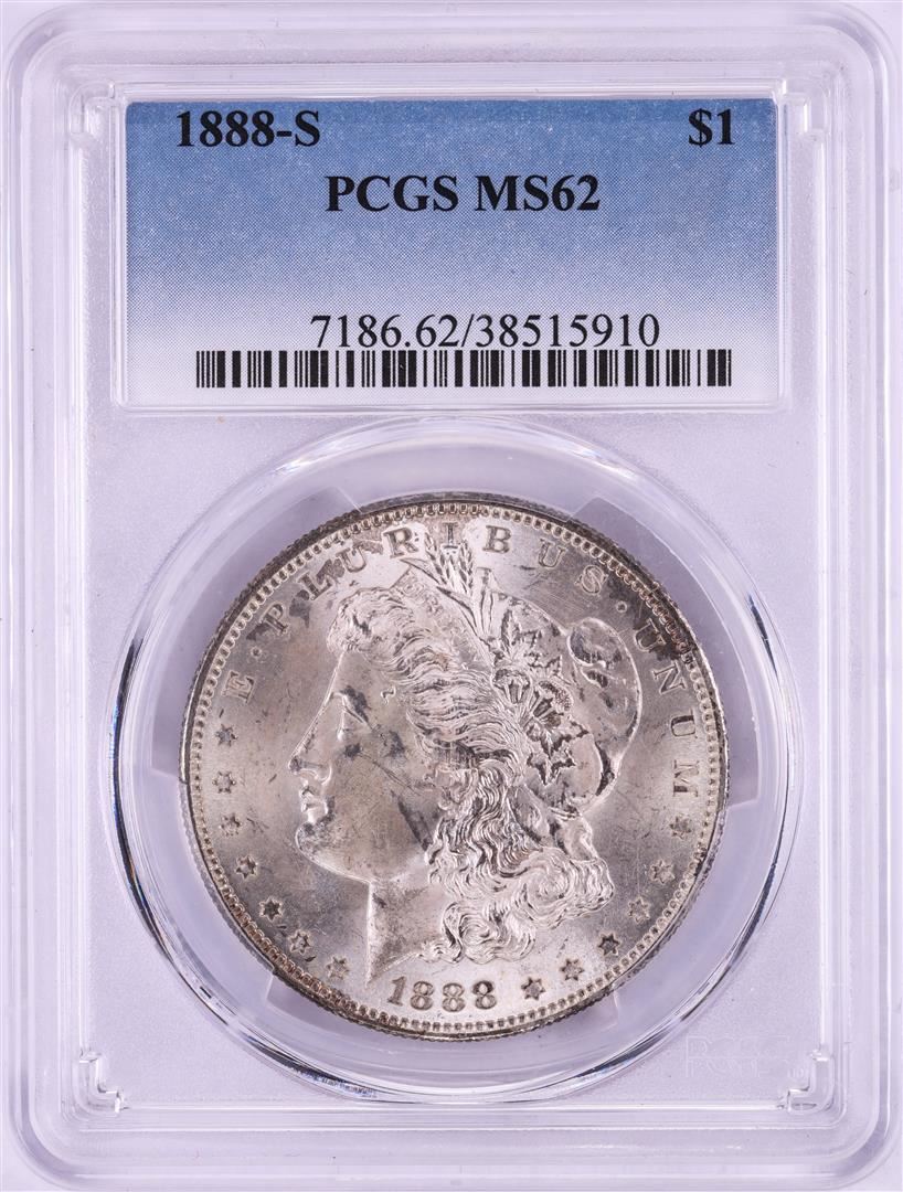 One 1888-S $1 Morgan Silver Dollar Coin PCGS MS62. PCGS Graded.
