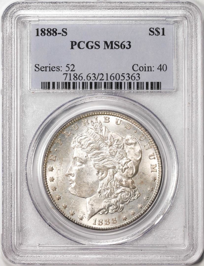 One 1888-S $1 Morgan Silver Dollar Coin PCGS MS63. PCGS Graded.