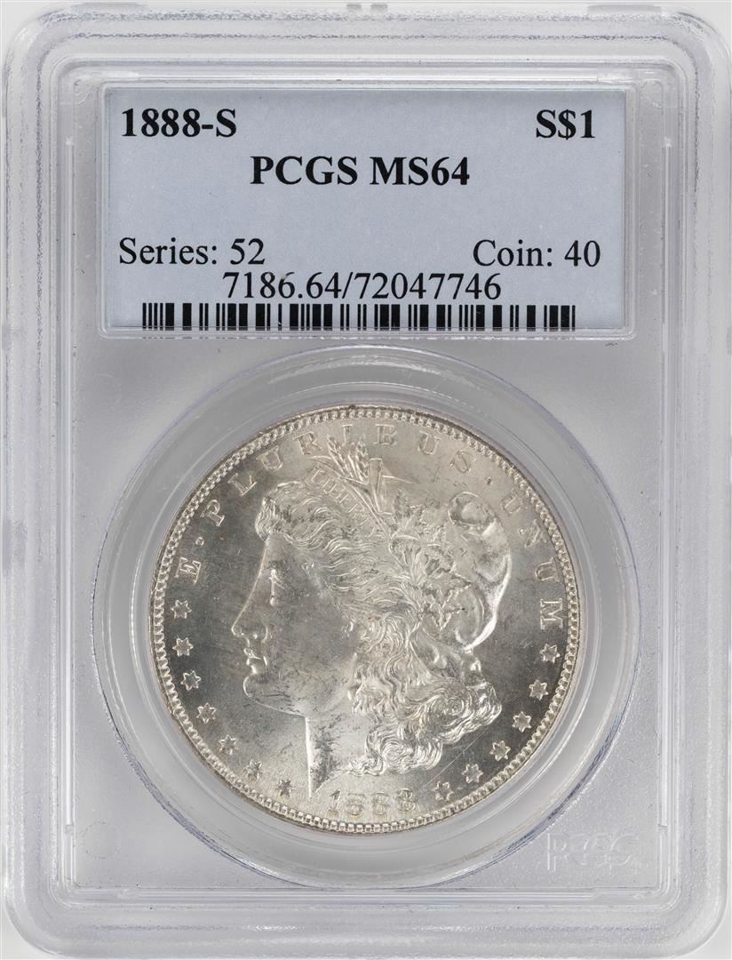 One 1888-S $1 Morgan Silver Dollar Coin PCGS MS64. PCGS Graded.