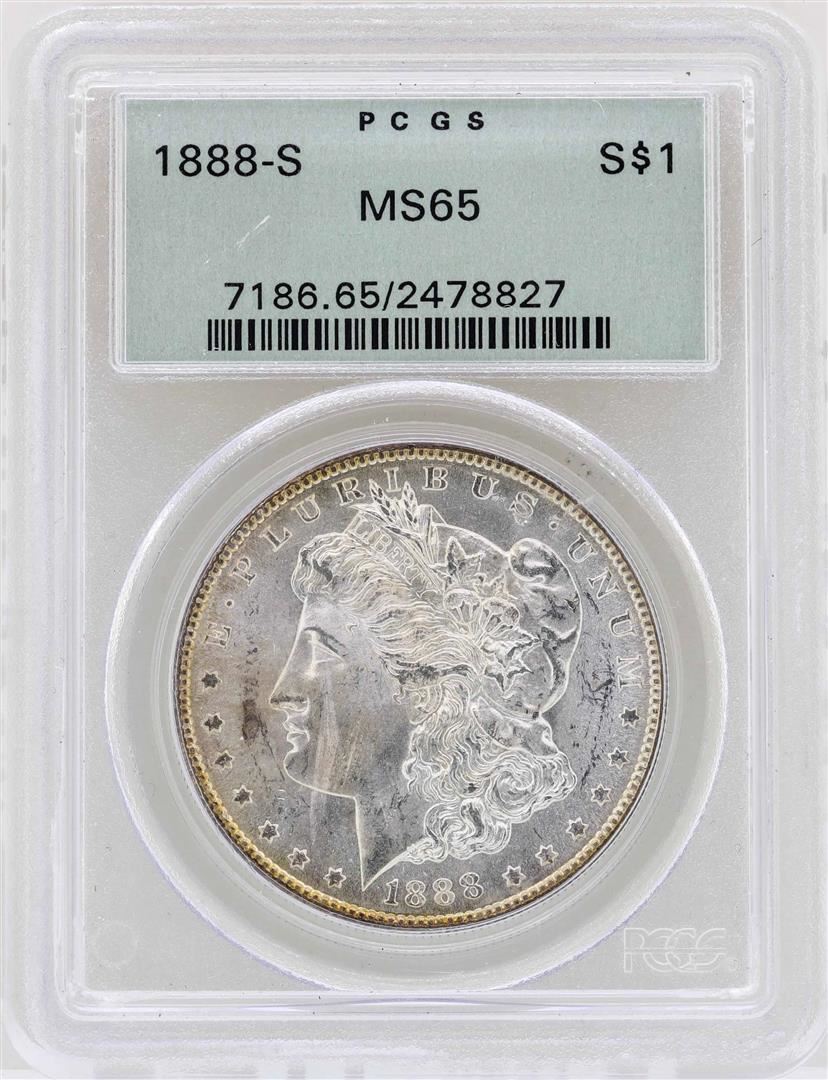 One 1888-S $1 Morgan Silver Dollar Coin PCGS MS65. PCGS Graded.