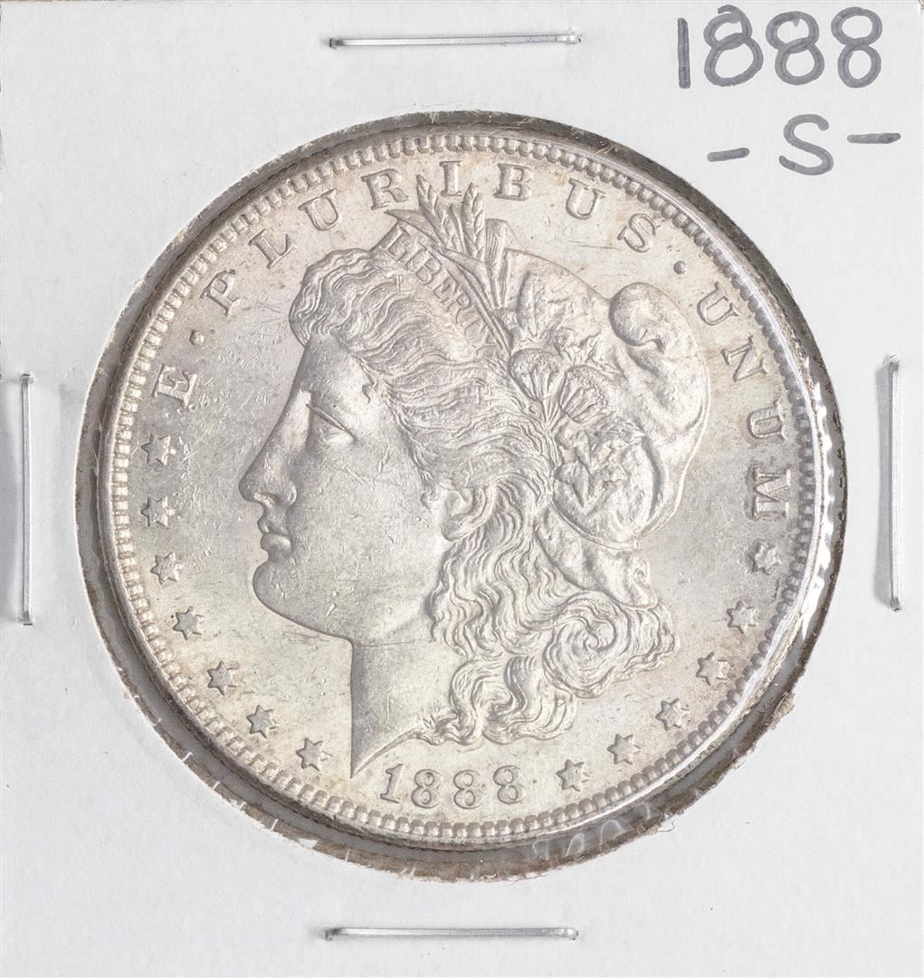 One 1888-S $1 Morgan Silver Dollar Coin.