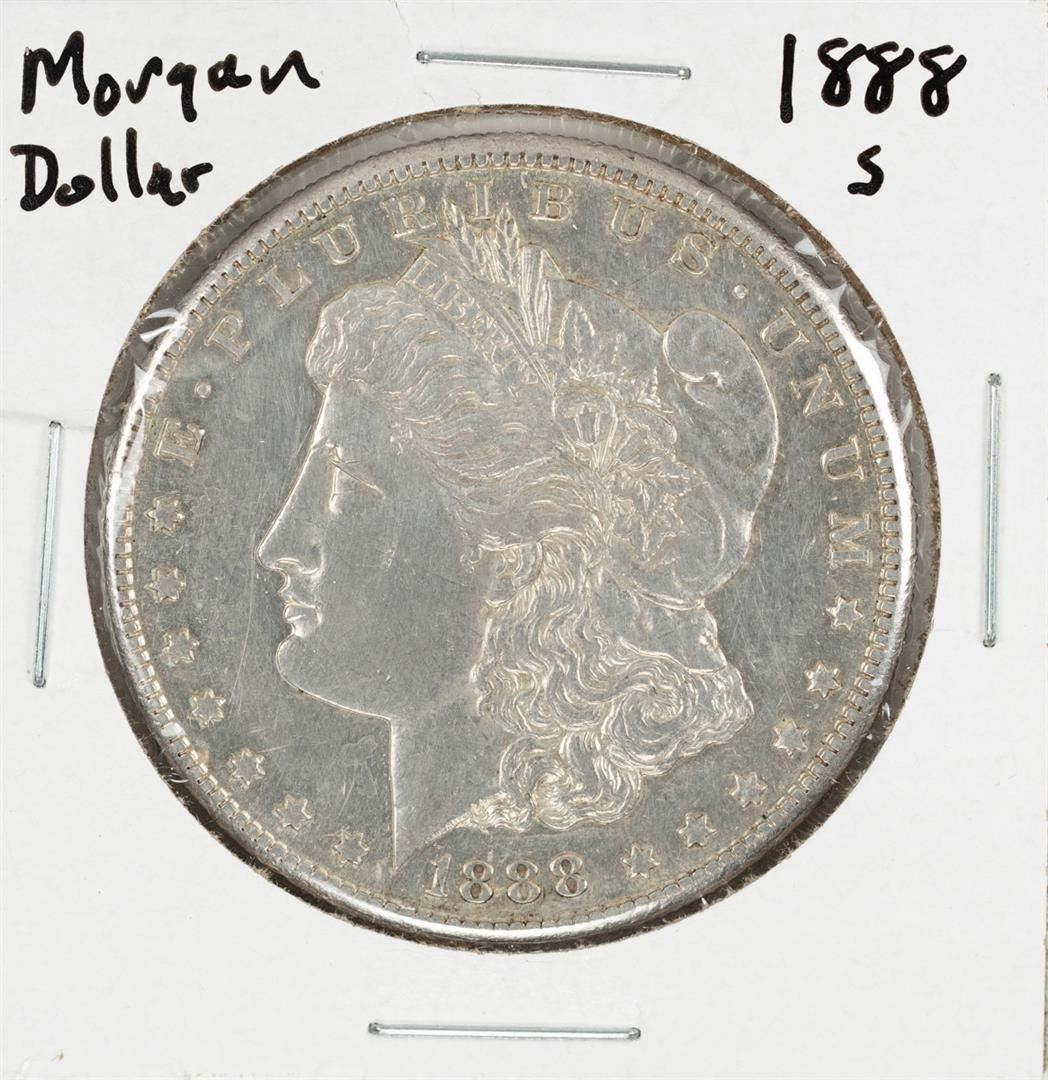 One 1888-S $1 Morgan Silver Dollar Coin.