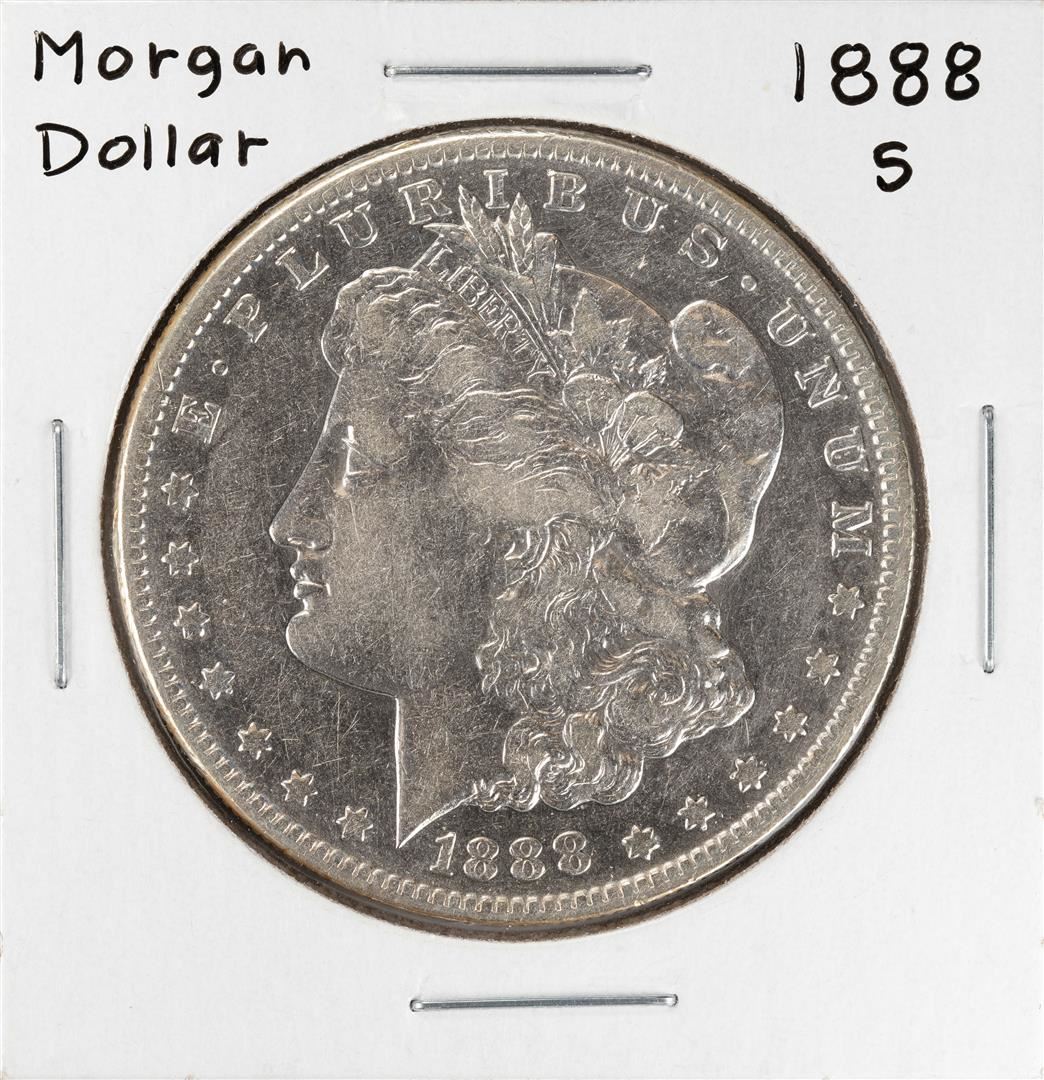 One 1888-S $1 Morgan Silver Dollar Coin.
