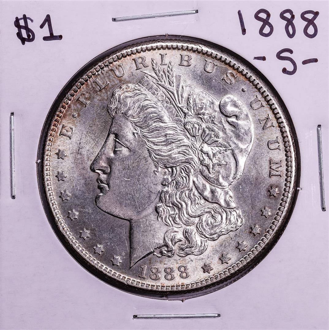 One 1888-S $1 Morgan Silver Dollar Coin.