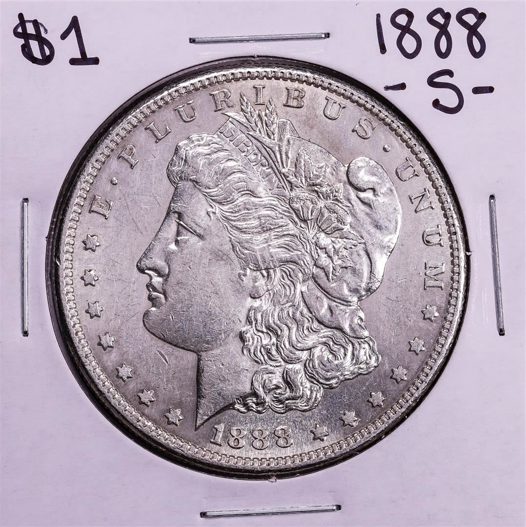 One 1888-S $1 Morgan Silver Dollar Coin.