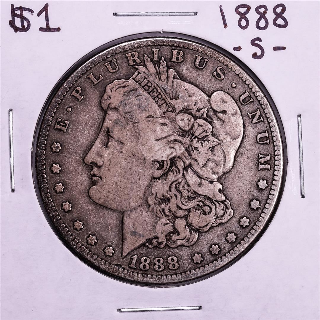 One 1888-S $1 Morgan Silver Dollar Coin.