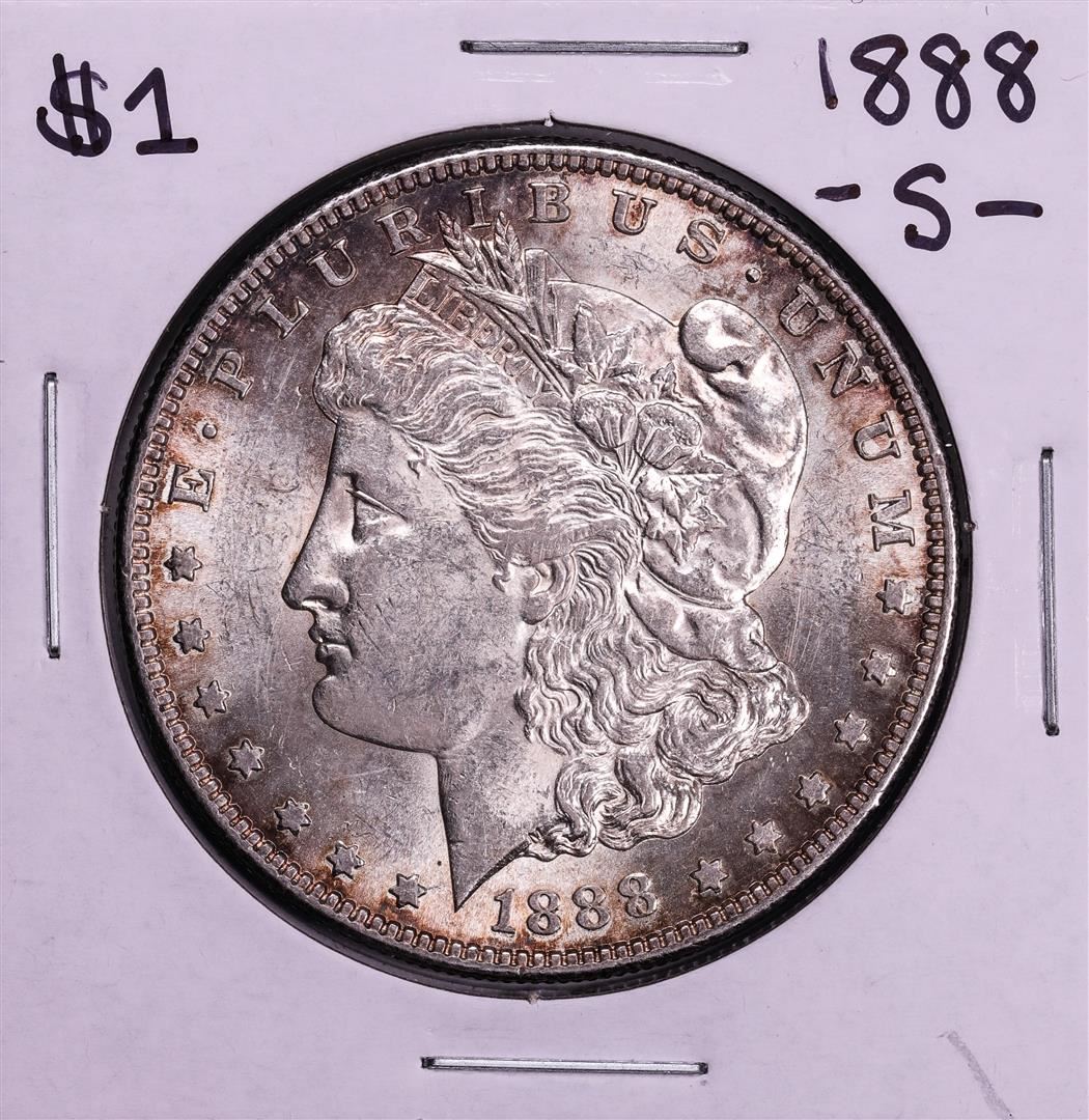 One 1888-S $1 Morgan Silver Dollar Coin.
