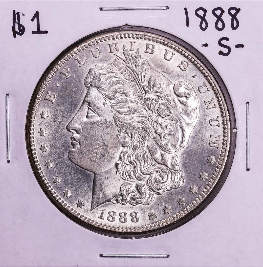 One 1888-S $1 Morgan Silver Dollar Coin.