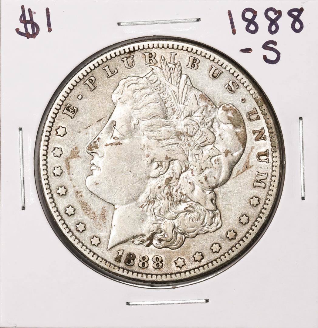 One 1888-S $1 Morgan Silver Dollar Coin.