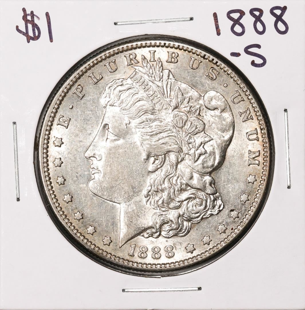 One 1888-S $1 Morgan Silver Dollar Coin.