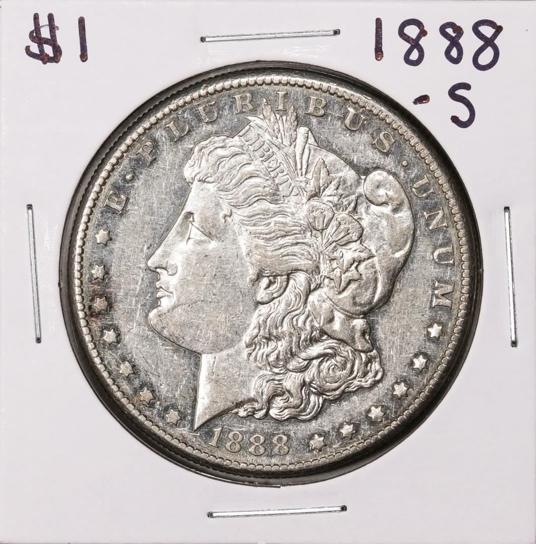 One 1888-S $1 Morgan Silver Dollar Coin.