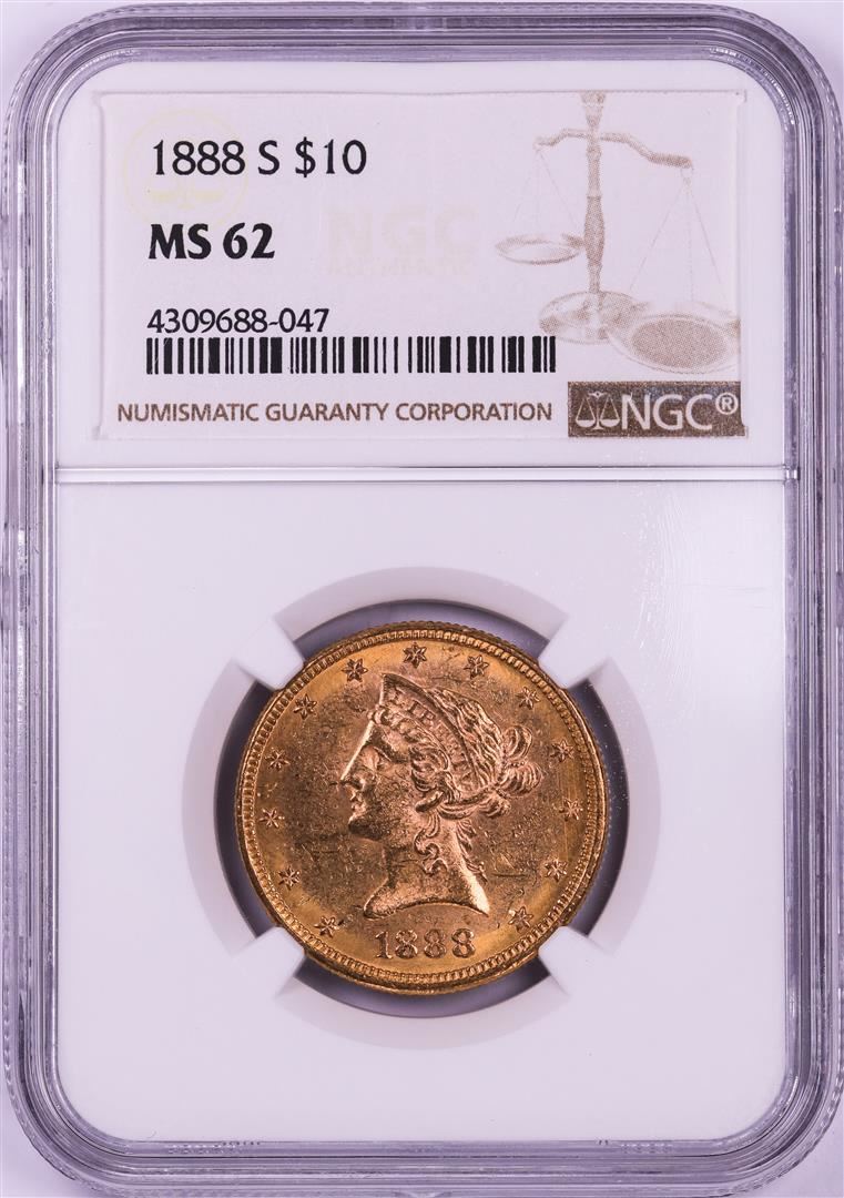 One 1888-S $10 Liberty Head Eagle Gold Coin NGC MS62.