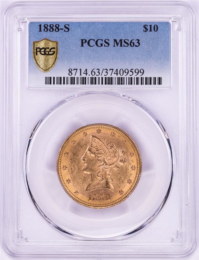 One 1888-S $10 Liberty Head Eagle Gold Coin PCGS MS63. PCGS Graded.