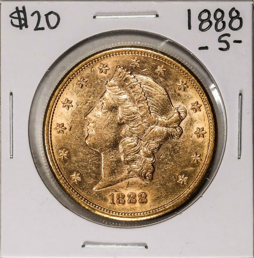 One 1888-S $20 Liberty Head Double Eagle Gold Coin.
