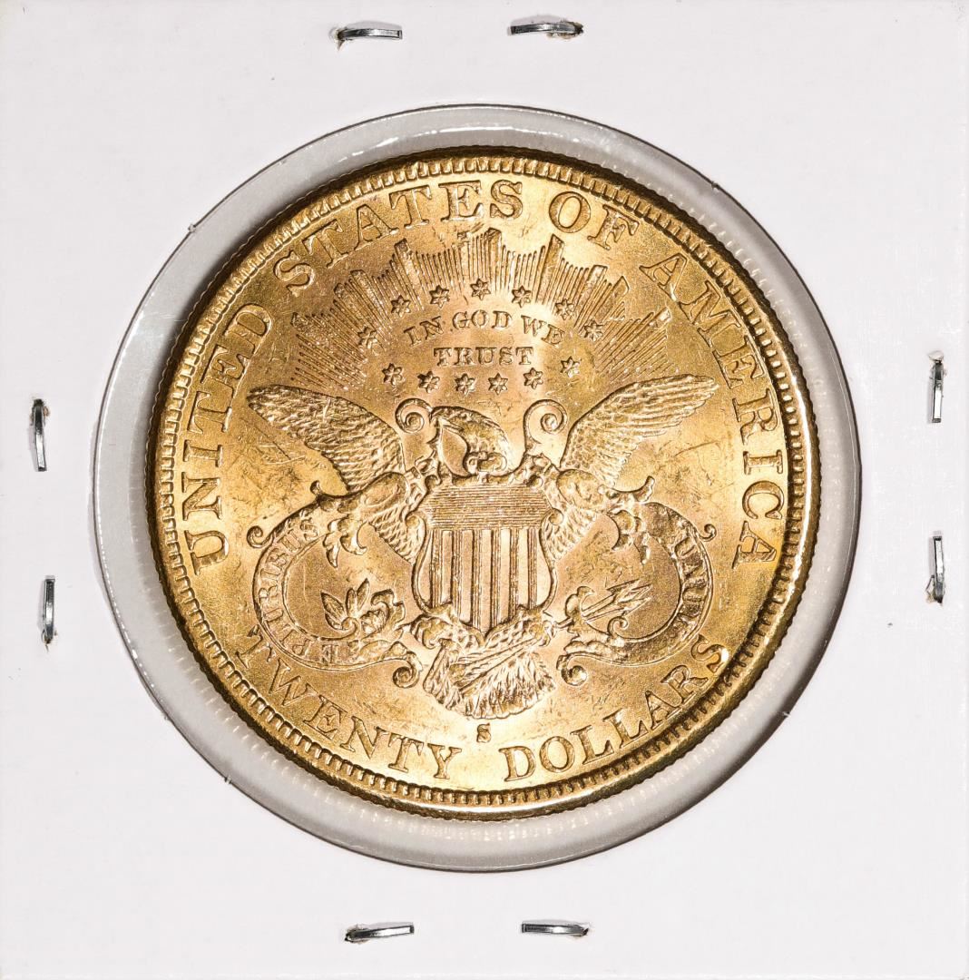 One 1888-S $20 Liberty Head Double Eagle Gold Coin.