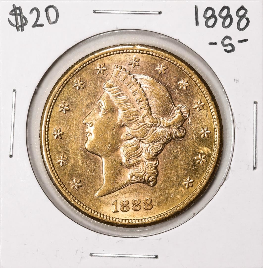 One 1888-S $20 Liberty Head Double Eagle Gold Coin.