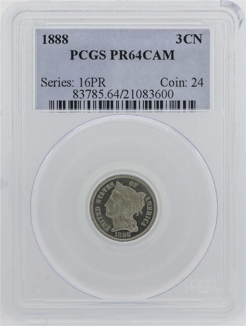 One 1888 Three Cent Nickel Proof Coin PCGS PR64CAM. PCGS Graded.