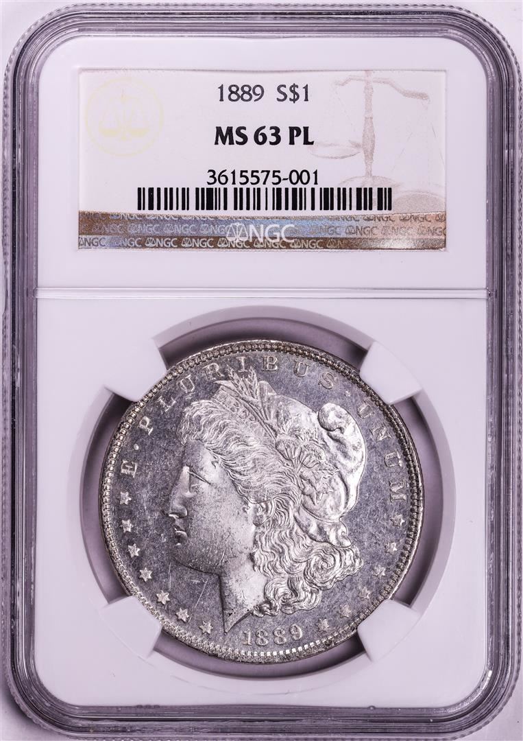 One 1889 $1 Morgan Silver Dollar Coin NGC MS63PL. NGC Certified.