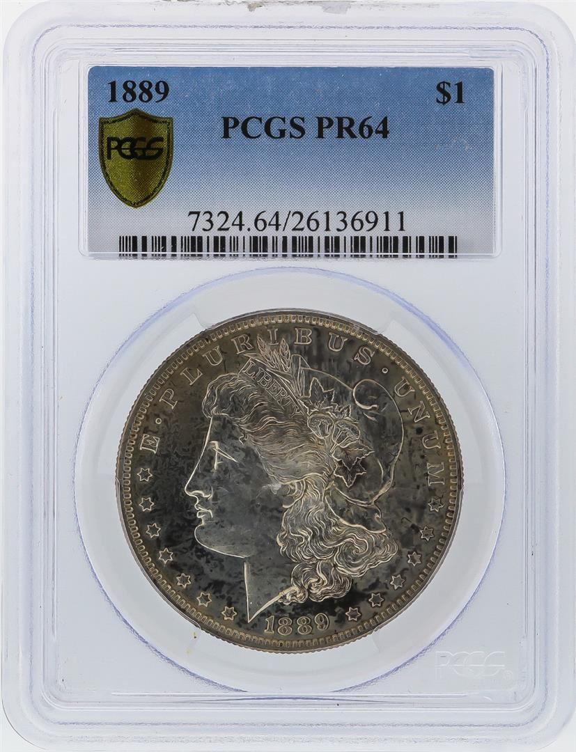 One 1889 $1 Morgan Silver Dollar Coin PCGS Graded PR64. PCGS Graded.