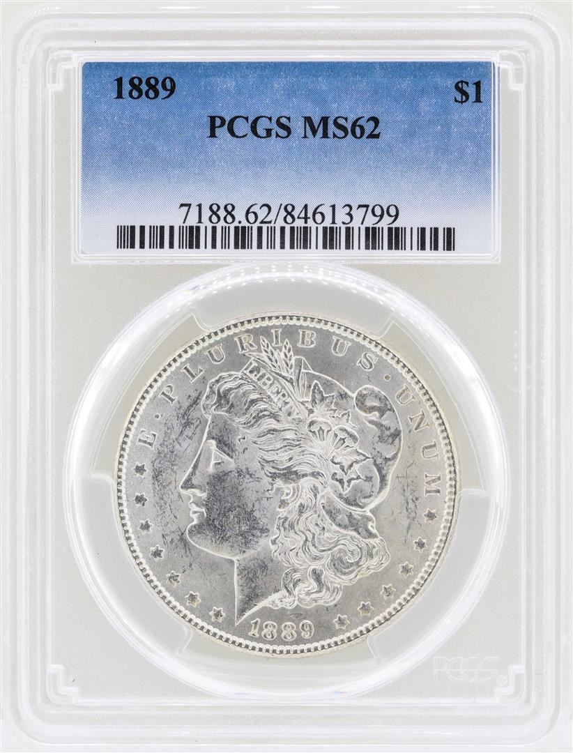 One 1889 $1 Morgan Silver Dollar Coin PCGS MS62. PCGS Graded.