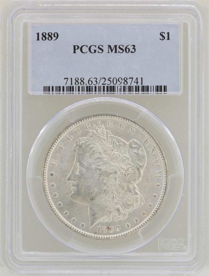 One 1889 $1 Morgan Silver Dollar Coin PCGS MS63. PCGS Graded.