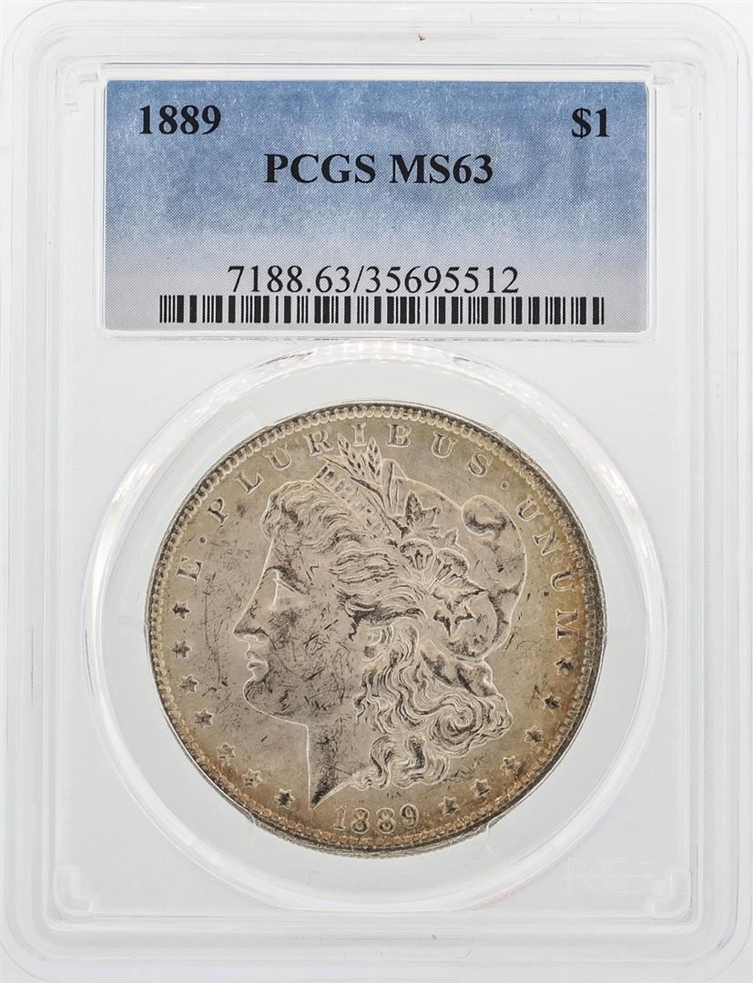 One 1889 $1 Morgan Silver Dollar Coin PCGS MS63. PCGS Graded.