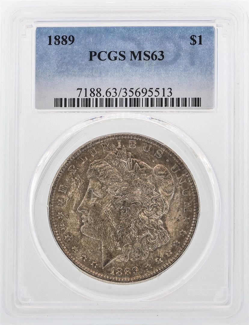 One 1889 $1 Morgan Silver Dollar Coin PCGS MS63. PCGS Graded.