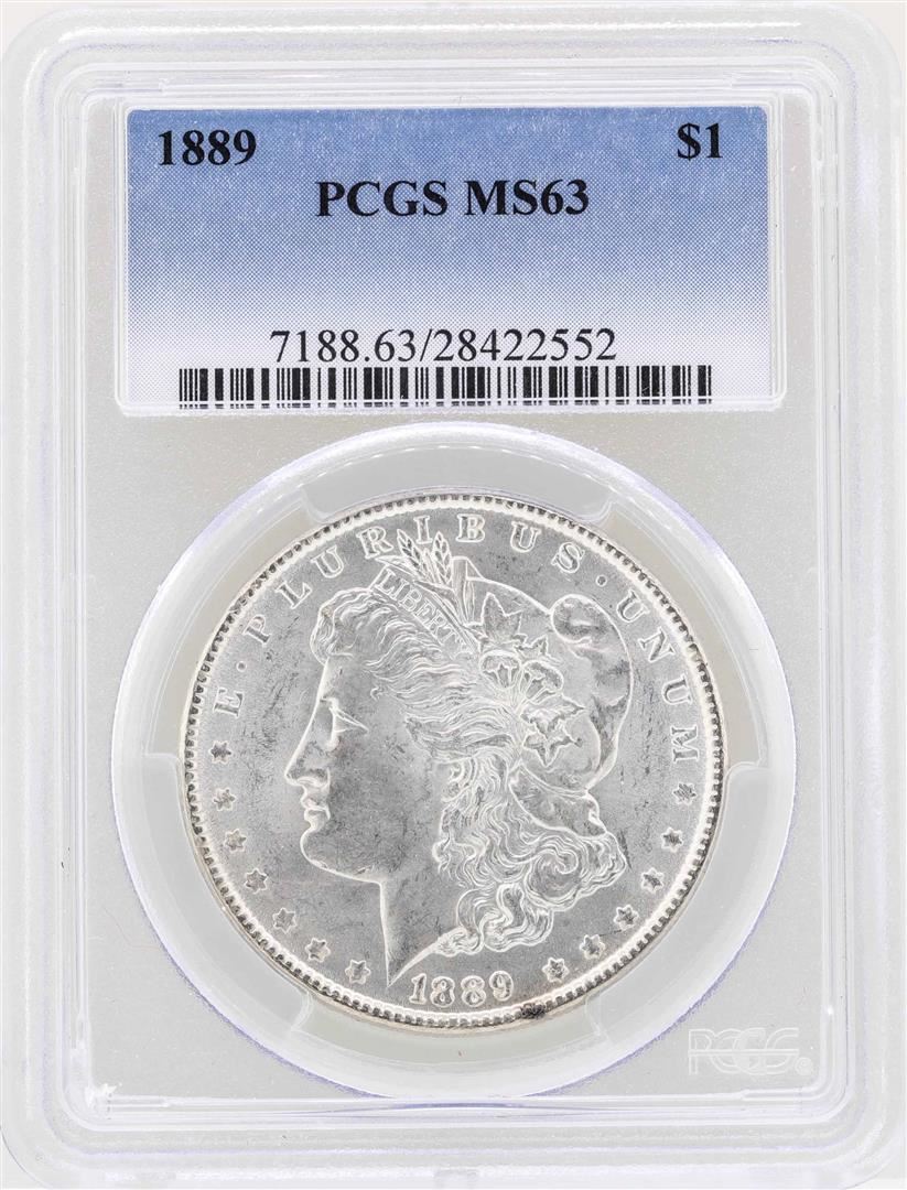 One 1889 $1 Morgan Silver Dollar Coin PCGS MS63. PCGS Graded.