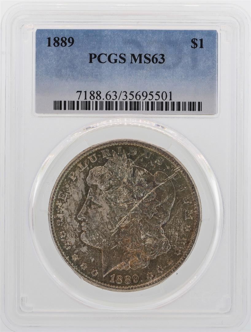 One 1889 $1 Morgan Silver Dollar Coin PCGS MS63. PCGS Graded.