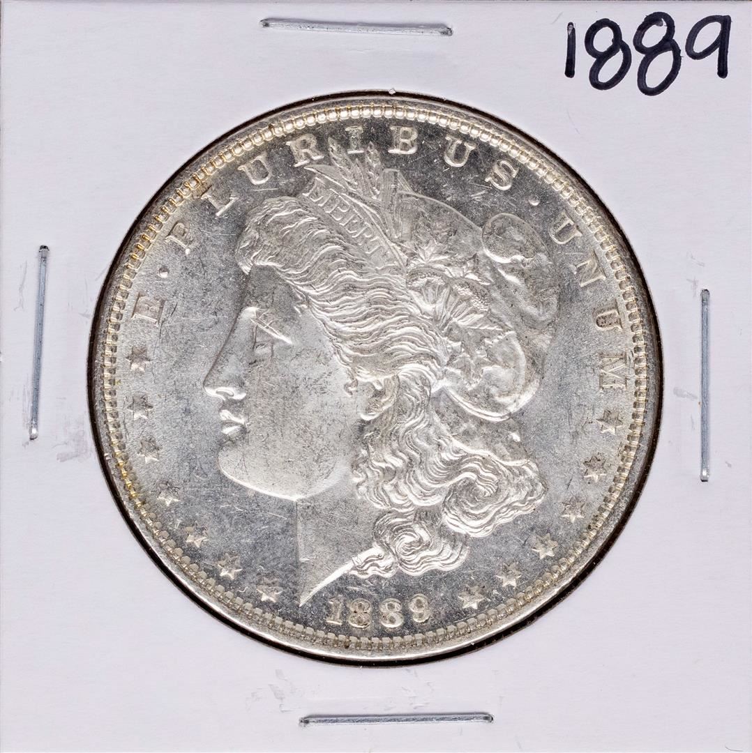 One 1889 $1 Morgan Silver Dollar Coin.
