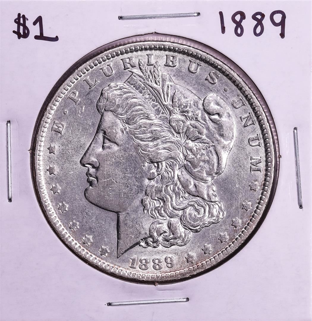 One 1889 $1 Morgan Silver Dollar Coin.