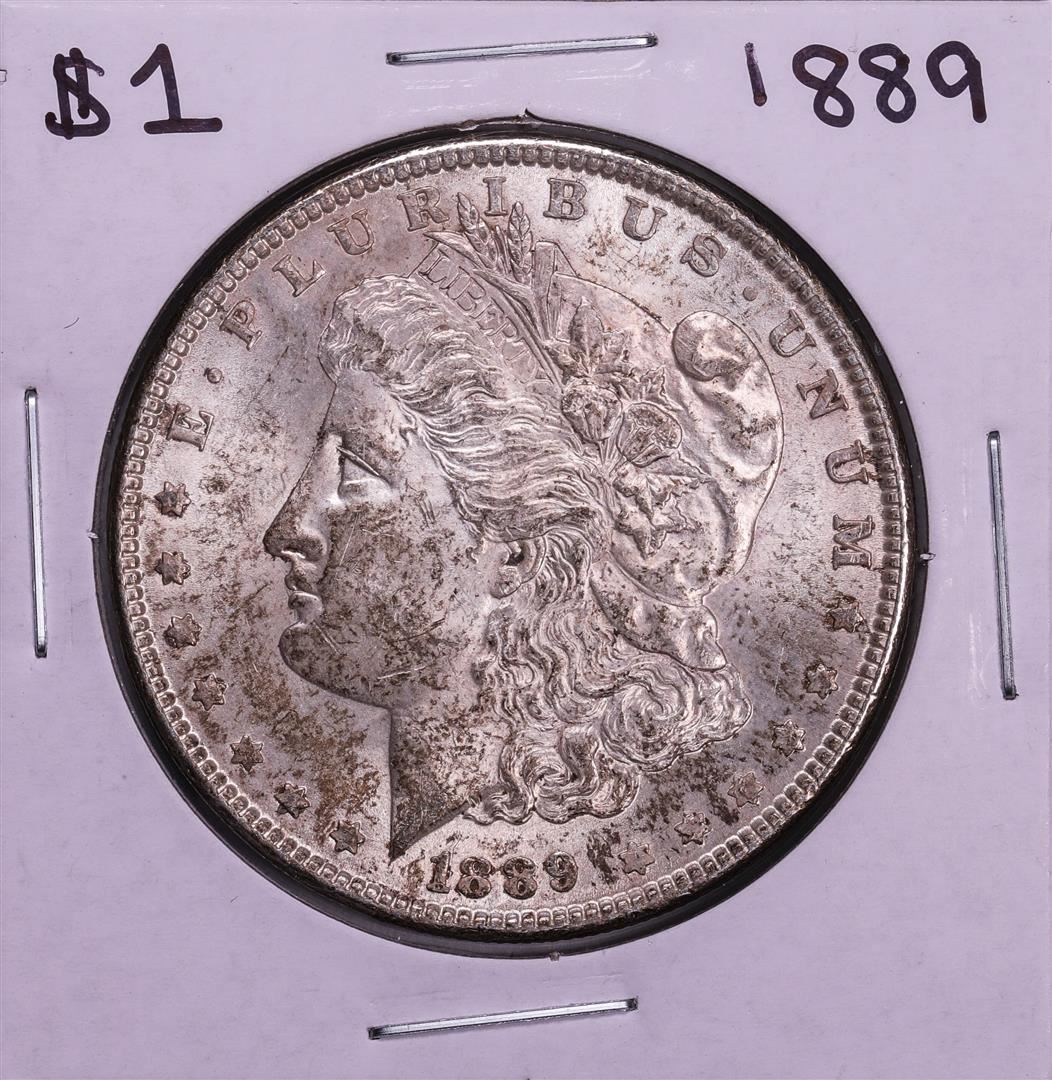 One 1889 $1 Morgan Silver Dollar Coin.