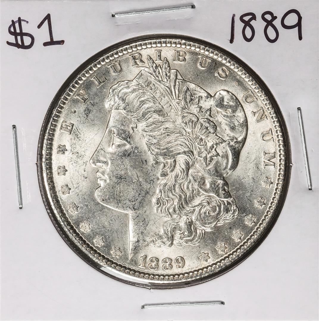 One 1889 $1 Morgan Silver Dollar Coin.
