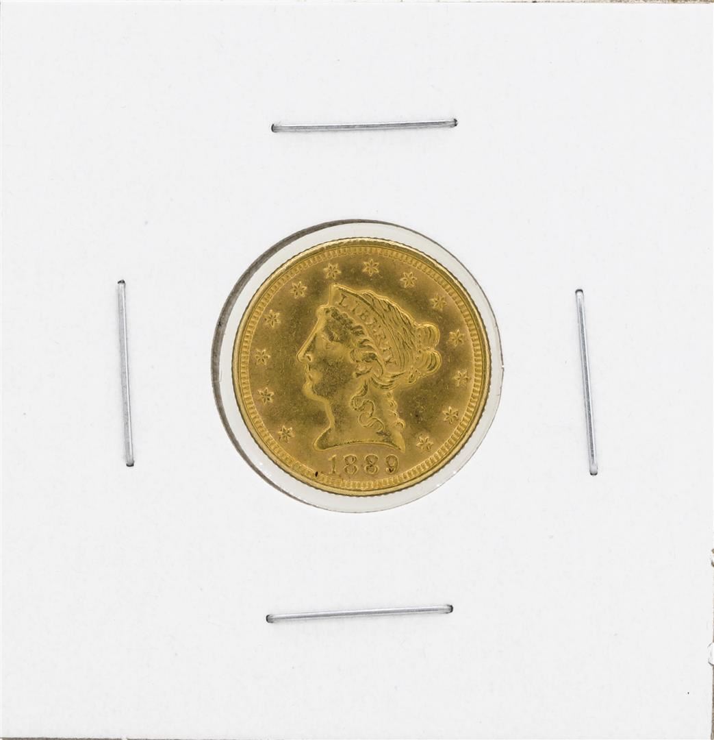 One 1889 $2 1/2 Liberty Head Quarter Eagle Gold Coin.
