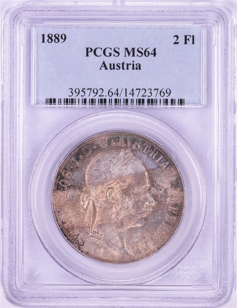One 1889 Austria 2 Florin Silver Coin PCGS MS64. PCGS Graded.