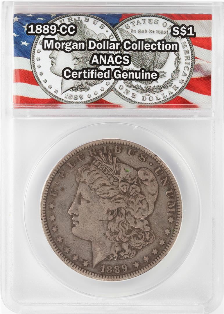 One 1889-CC $1 Morgan Silver Dollar Coin ANACS Certified Genuine. ANACS Certified.