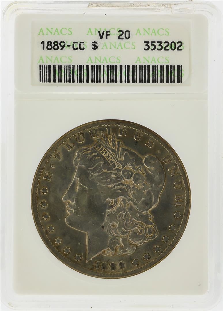 One 1889-CC $1 Morgan Silver Dollar Coin ANACS Graded VF 20. ANACS Certified.