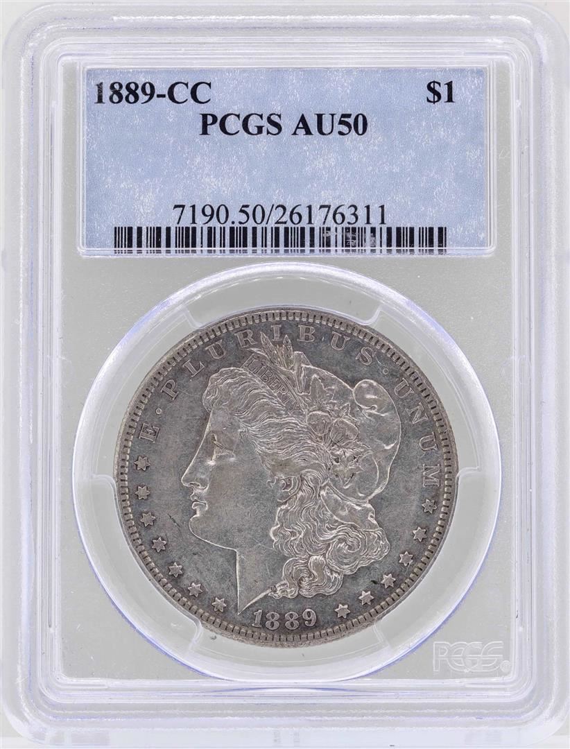 One 1889-CC $1 Morgan Silver Dollar Coin PCGS AU50. PCGS Graded.
