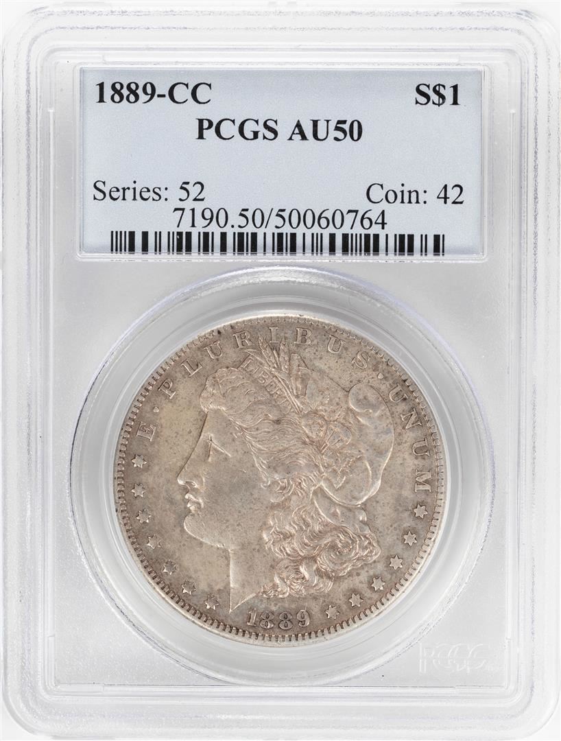 One 1889-CC $1 Morgan Silver Dollar Coin PCGS AU50. PCGS Graded.