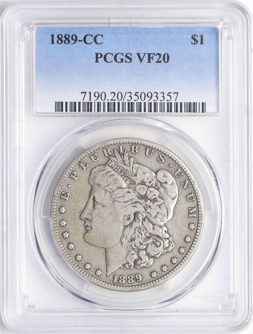 One 1889-CC $1 Morgan Silver Dollar Coin PCGS VF20. PCGS Graded.