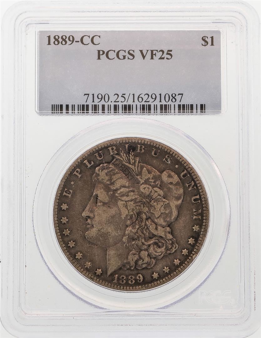 One 1889-CC $1 Morgan Silver Dollar Coin PCGS VF25. PCGS Graded.