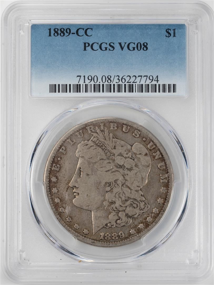 One 1889-CC $1 Morgan Silver Dollar Coin PCGS VG08. PCGS Graded.