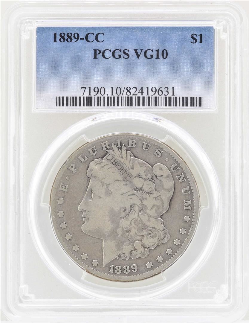 One 1889-CC $1 Morgan Silver Dollar Coin PCGS VG10. PCGS Graded.