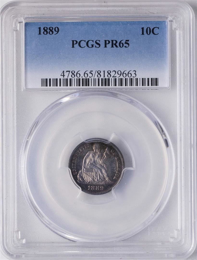 One 1889 Proof Seated Liberty Dime Coin PCGS PR65. PCGS Graded.
