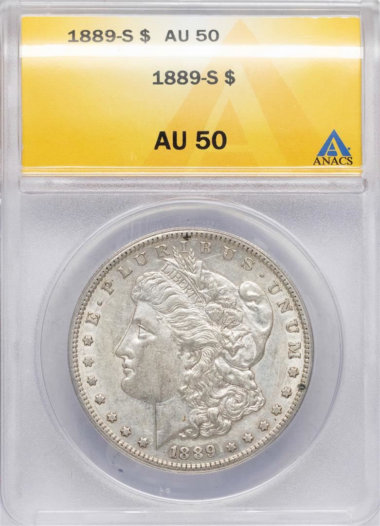 One 1889-S $1 Morgan Silver Dollar Coin ANACS AU50. ANACS Certified.