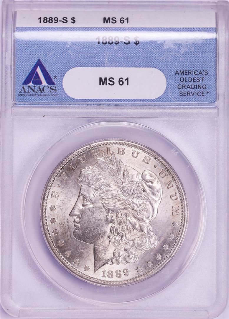 One 1889-S $1 Morgan Silver Dollar Coin ANACS MS61. ANACS Certified.