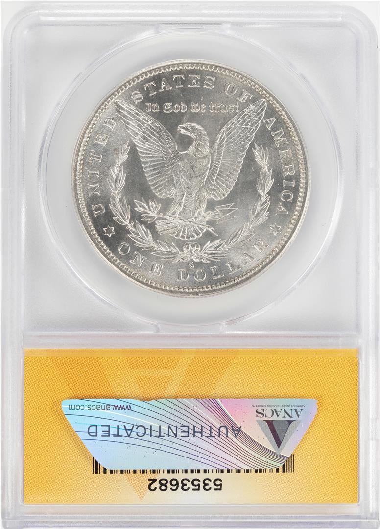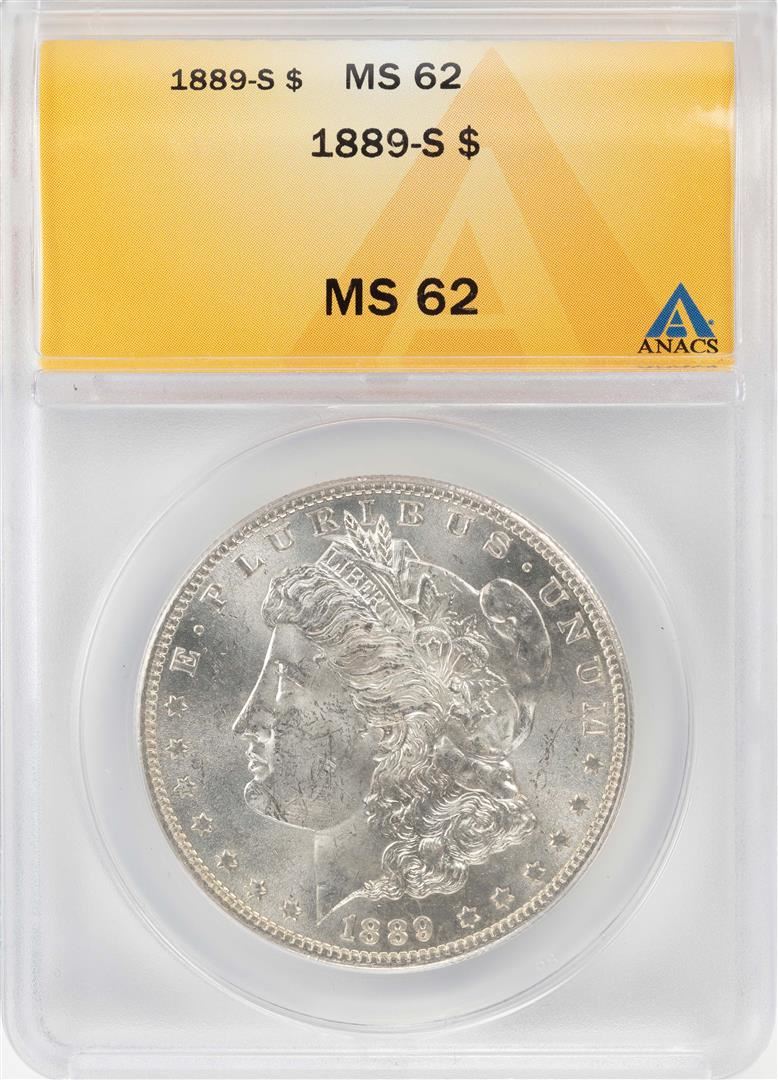 One 1889-S $1 Morgan Silver Dollar Coin ANACS MS62. ANACS Certified.