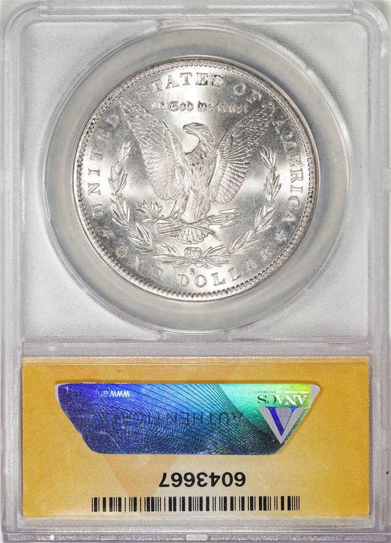 One 1889-S $1 Morgan Silver Dollar Coin ANACS MS62. ANACS Certified.