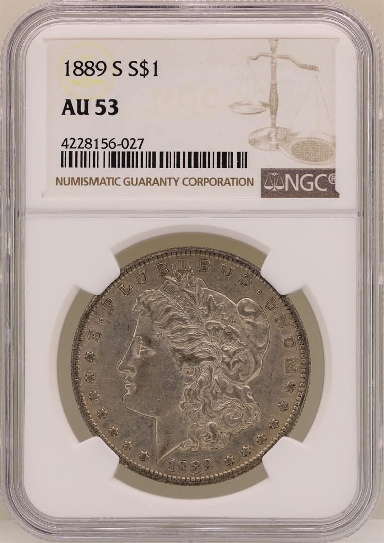 One 1889-S $1 Morgan Silver Dollar Coin NGC AU53. NGC Certified.