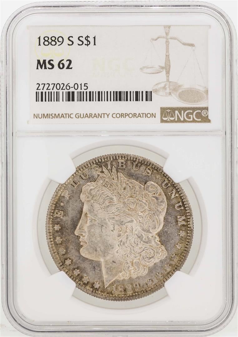 One 1889-S $1 Morgan Silver Dollar Coin NGC MS62. NGC Certified.
